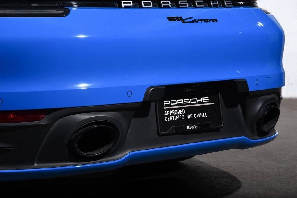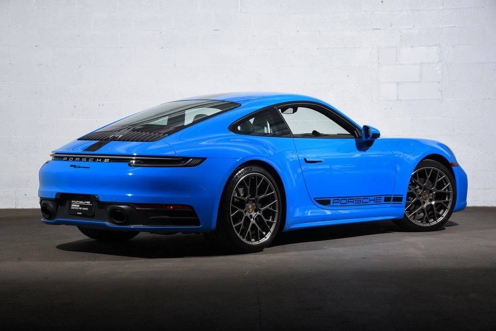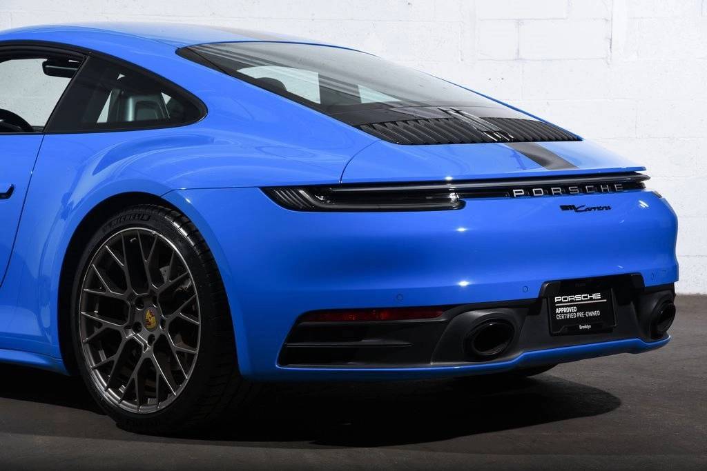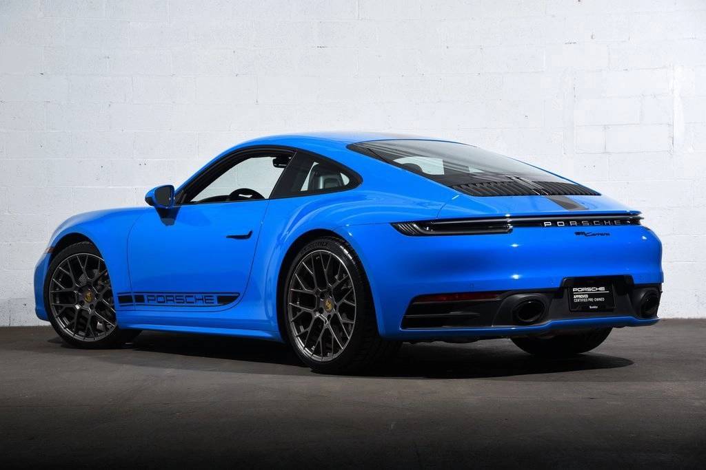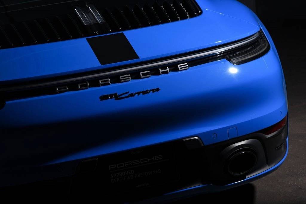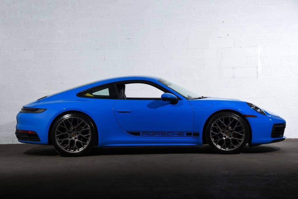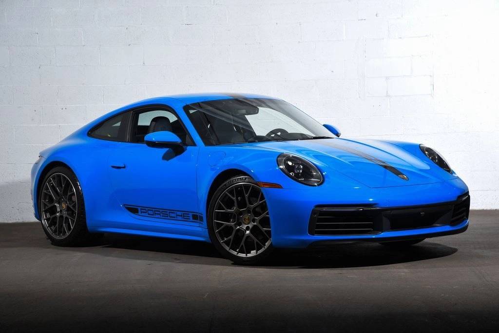 CARFAX One-Owner. Certified. Shark Blue 2024 Porsche 911 2D Coupe Carrera RWD 8-Speed Porsche Doppelkupplung (PDK) 3.0L H6 Turbocharged DOHC 24V LEV3-ULEV70 379hp ABS brakes, Alloy wheels, Electronic Stability Control, Front dual zone A/C, Heated door mirrors, Heated front seats, Illuminated entry, Leather Seat Trim, Low tire pressure warning, Navigation System, Porsche Communication Management, Remote keyless entry, Traction control.